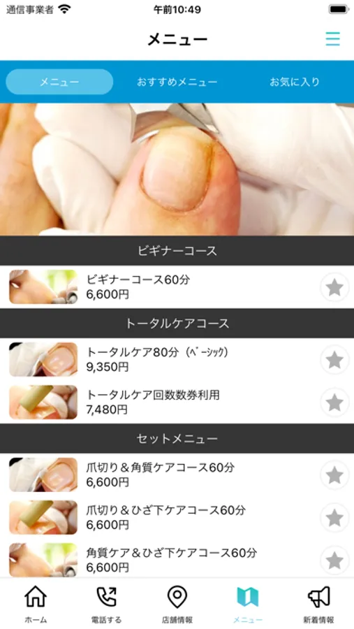 気になるサロンメニューや価格をアプリから簡単にご確認いただけます。