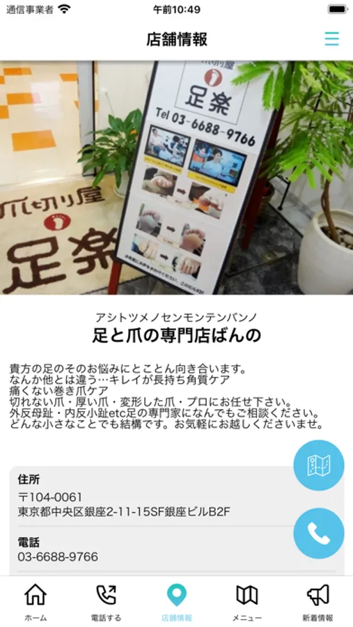 店舗のマップが表示され、地図アプリとも連携しているので、初めてのご来店の時も簡単に見つけることができます。