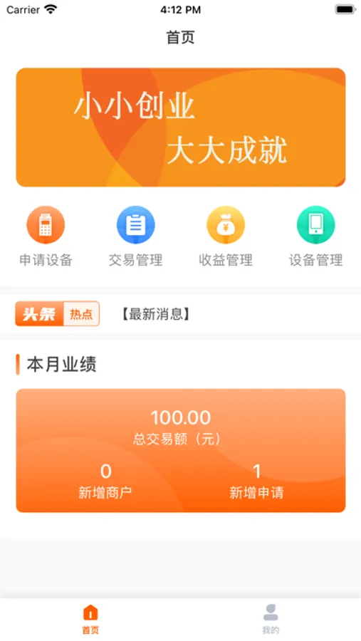 小小创是一款数据统计工具app,设有设备申请、交易查询、收益汇总、设备管理和个人信息等功能。实现了设备的线上获取方式,简洁、清晰地统计了交易情况和收益情况,并详细地列举了设备情况。