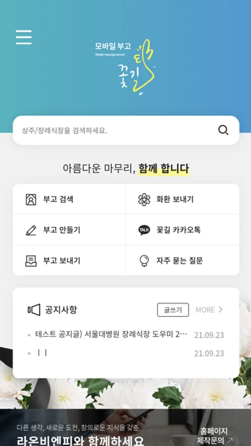 꽃길부고는 고인의 품격을 높이고, 정중하게 부고장을 지인들께 전송할 수 있는 프리미엄 모바일 부고알림 서비스 입니다.