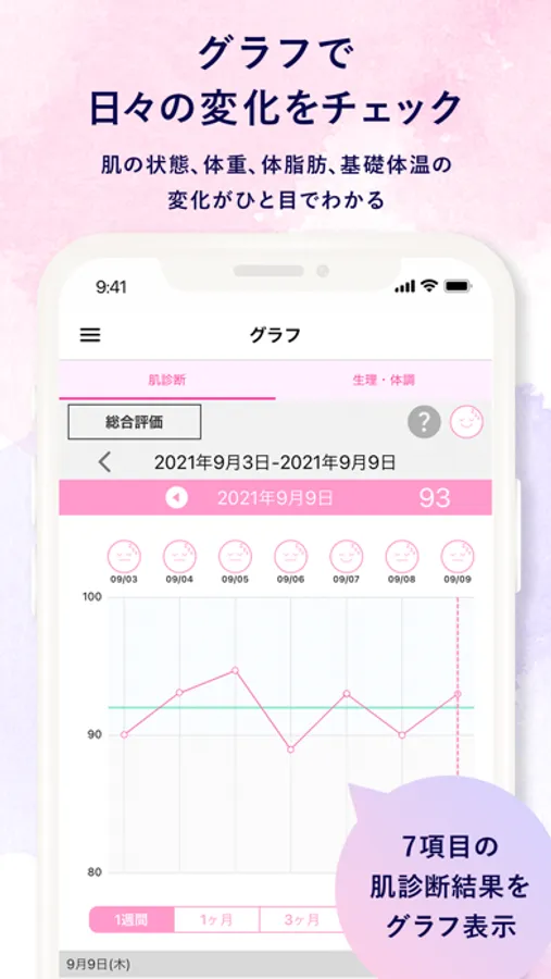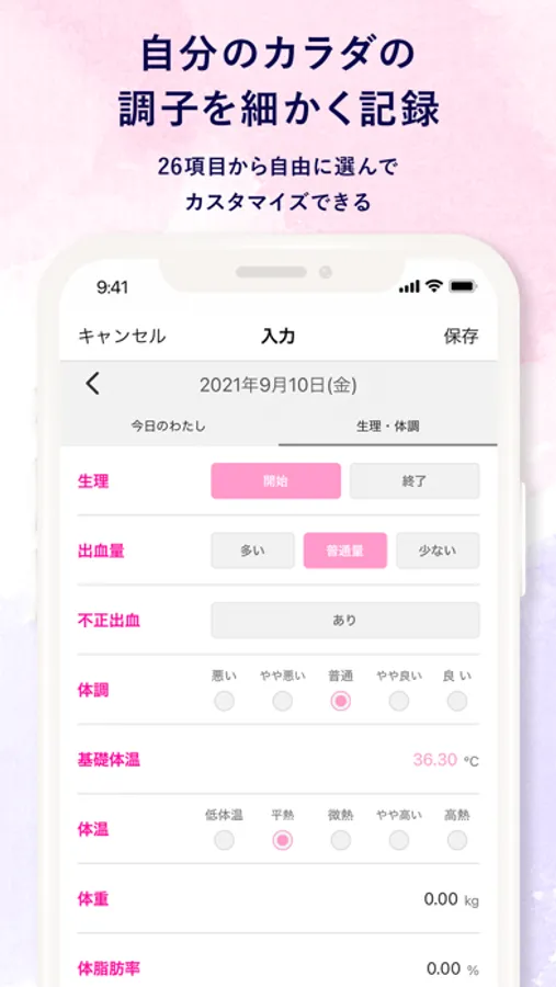さらに、体重・生理状況・基礎体温など合わせて7項目の中から 自分好みにカスタマイズしてご利用いただけます。