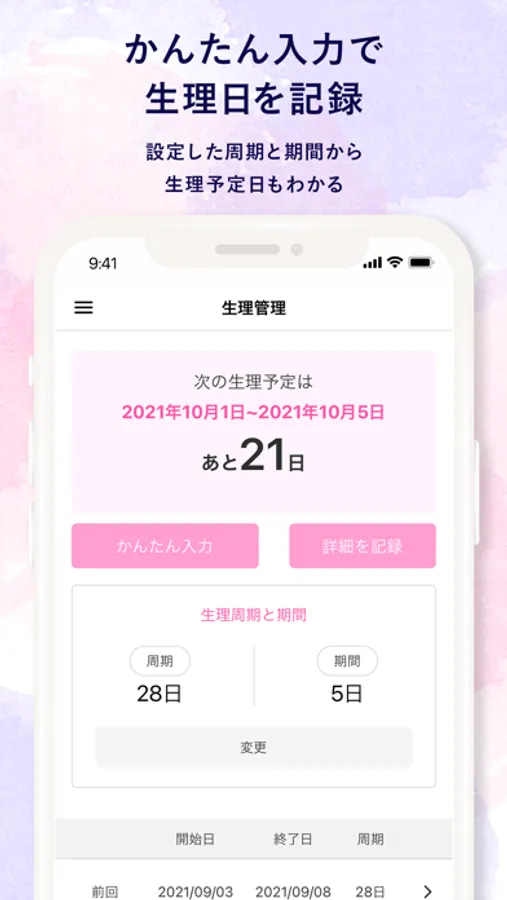 あなたの生理周期に合わせて生理予定日をお知らせ。