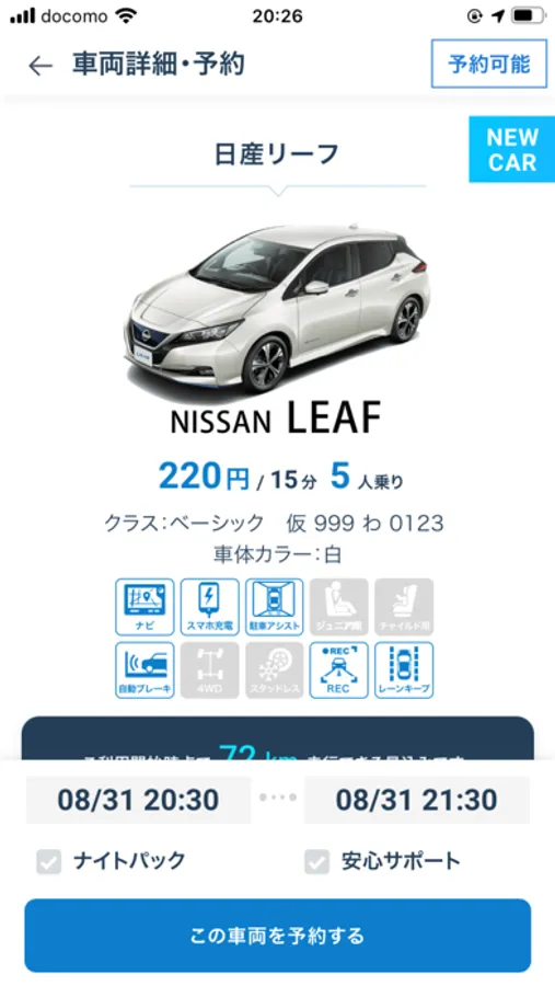 アプリ一つで簡単に、24時間365日いつでも、電気自動車をご利用いただけるサービスです。