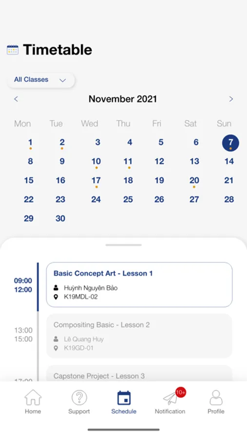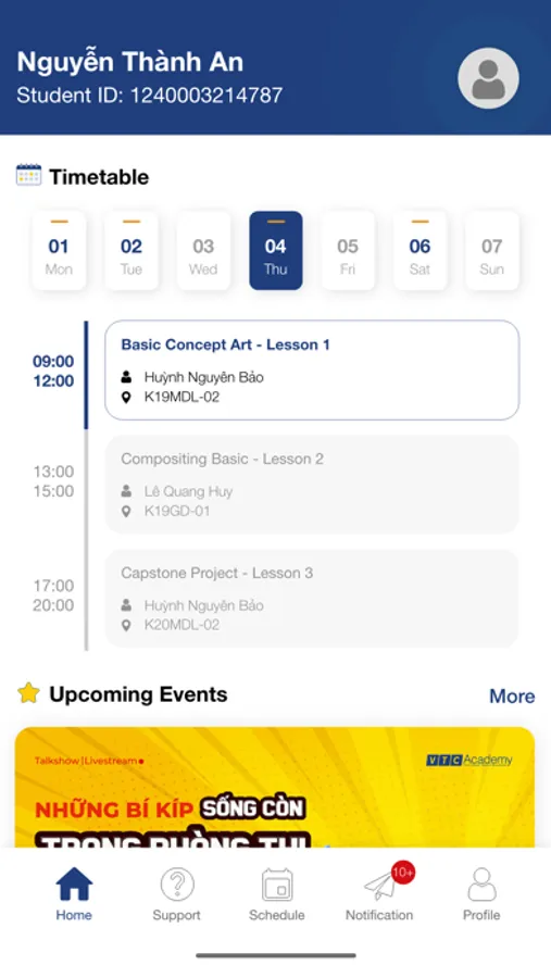 Học viên có thể liên hệ hỗ trợ và giải đáp những thắc mắc liên quan đến khóa học cũng như các sự kiện, chương trình của VTC Academy và VTC Academy Plus ngay trên ứng dụng.
