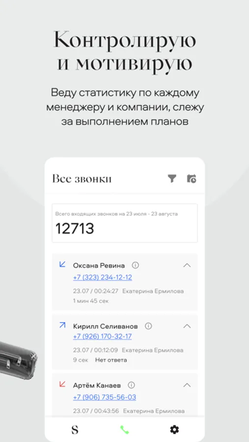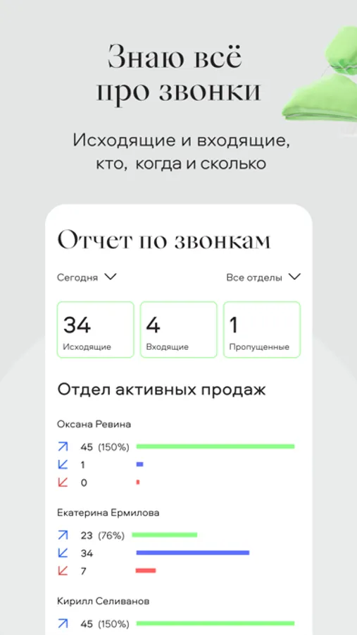 Передаю данных о звонках в CRM (готовые интеграции с amoCRM, Битрикс и др.).