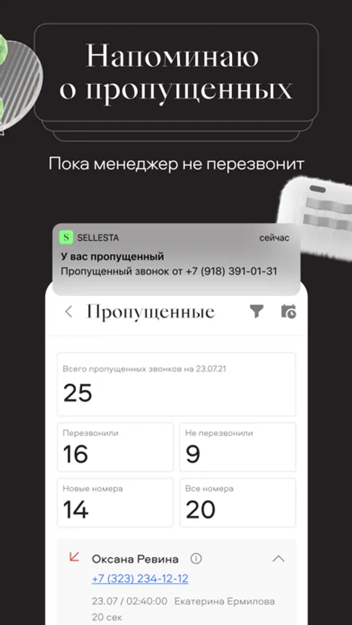 Знаю о пропущенных звонках, даже если телефон выключен, и напоминаю, что нужно перезвонить.