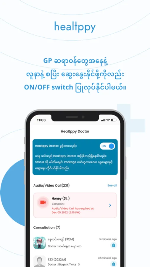 Booking appointment with a specialist of your choice, getting the service with doctors online over text, audio call and video call from your smartphone as your convenience time. Accessible the valuable health records for both doctors and patients.