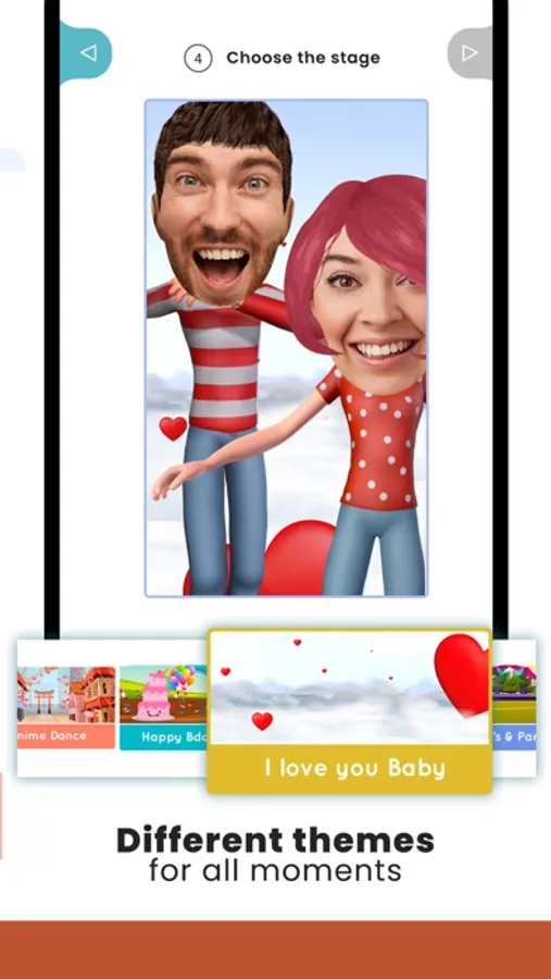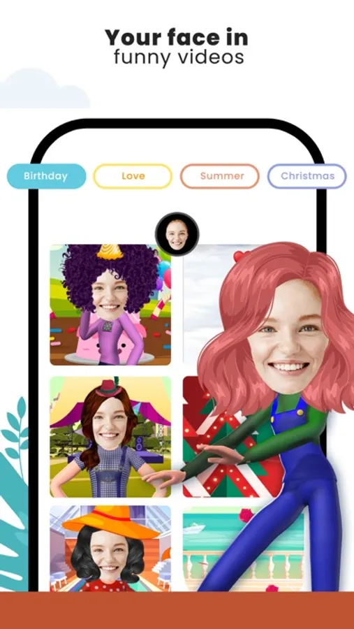 Make unusual birthday congratulation for your friends with free face animation app or make a 3d animation movie for your marriage anniversary, for your friends’ birthday or to share your Christmas wishes. Discover different meme templates where you can paste your photos on the characters and make a funny dancing video. Enjoy our funny templates with different moods and backgrounds.