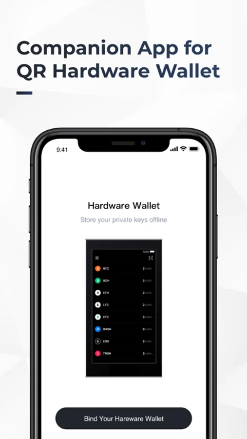 The QR Hardware Wallet is completely air-gapped and needs the companion app to connect to blockchain networks.