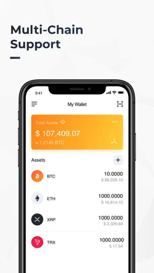 The QR Watch-Only Wallet App supports BTC, ETH, BCH, XRP, TRON, LTC, DASH, DOT, ETH and TRX tokens, for 8 chains and 800+ tokens, easily manage multi-chain assets.