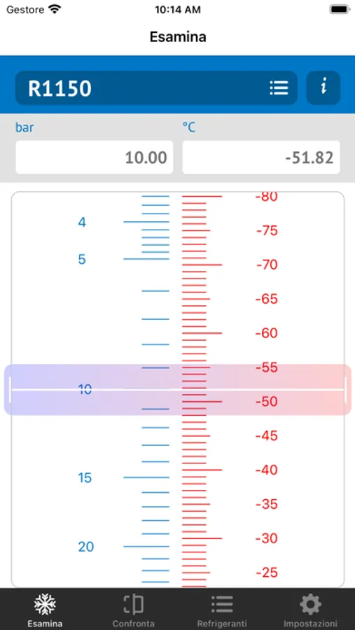 The Regolo APP of Castel is able to quickly calculate the relationship between the pressure and the temperature of the most common refrigerant gases in saturation conditions.