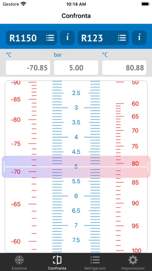 Within it is also possible to make a direct comparison between two different gases, comparing at the same time the differentiation saturation temperatures relative to a common reference pressure in the same screen view.