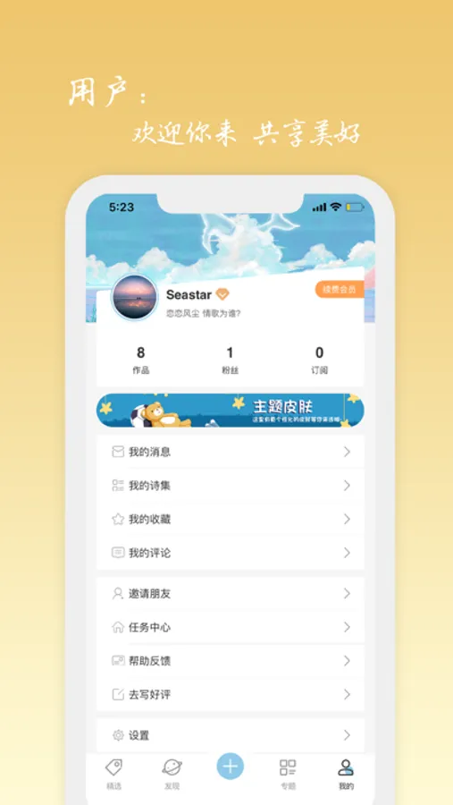诗歌美句未来也将推出诗人原创诗句内容制作模块,让更多诗人在这里可以展露各自的诗歌才华。