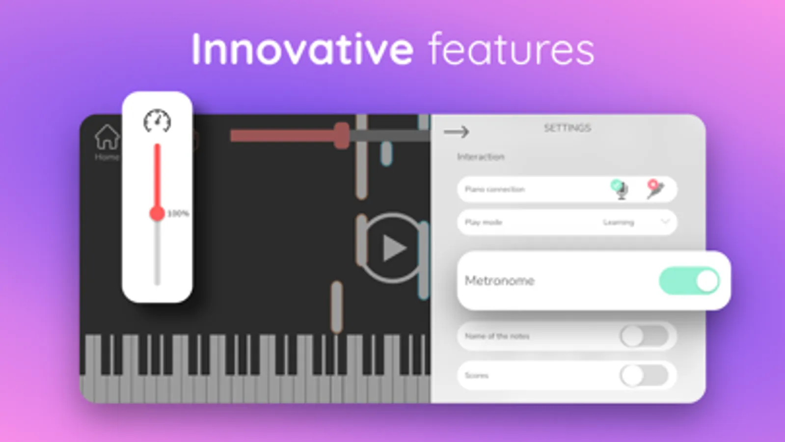 - Piano connection: Plug your own keyboard via a MIDI-USB cable in order to interact with the virtual piano and learn at your own pace.