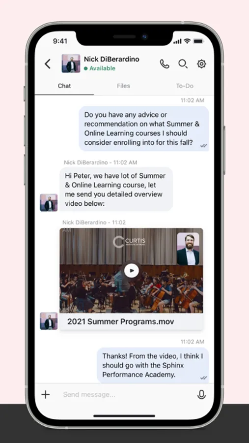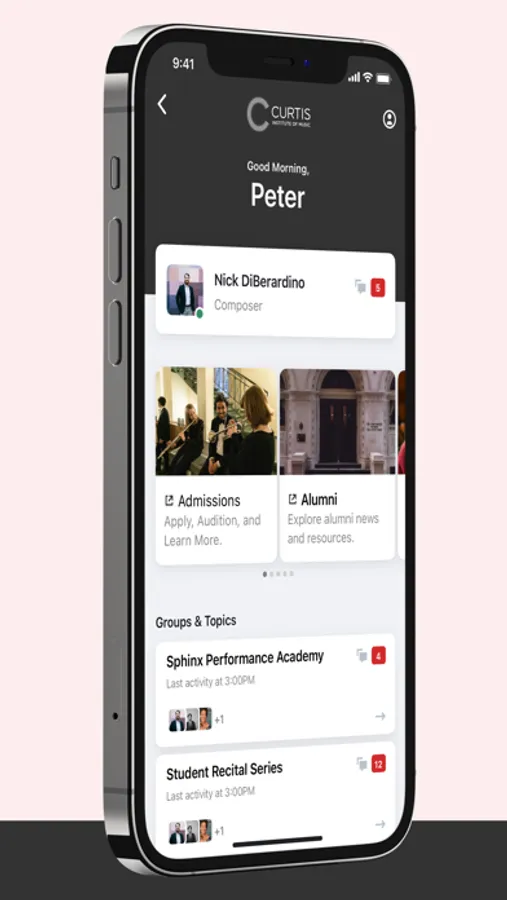 CurtisConnect allows prospective students to connect with alumni, faculty, and students to learn more about Curtis and work closely with Curtis mentors for artistic development. CurtisConnect also enables Curtis alumni to connect with mentors, prospective students, and fellow alumni for professional and career development.