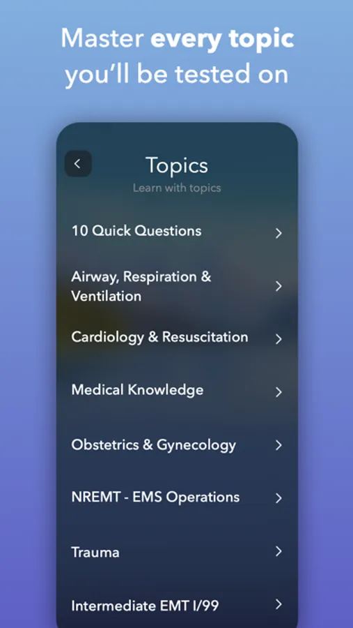 You will see why this app is referred to as "The EMT Bible" - It's so comprehensive! It will teach you everything you need to pass your exam.