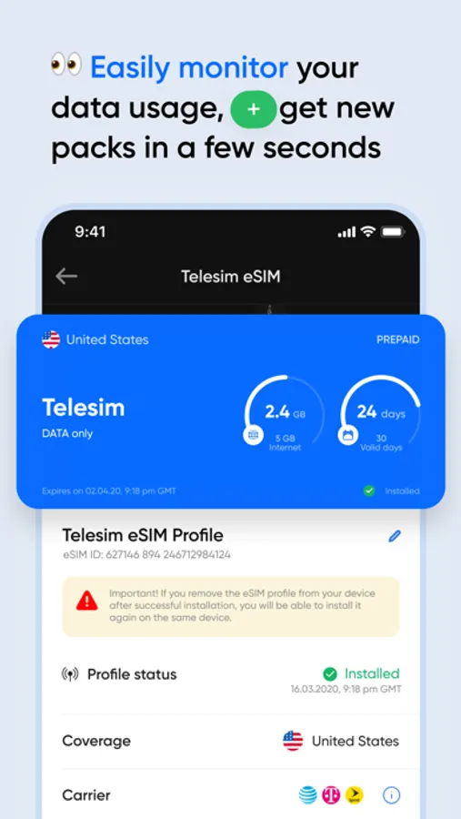 Stay connected with Telesim and never worry about data roaming charges again. Download our app today and start enjoying reliable and super-fast internet connectivity anywhere you go.