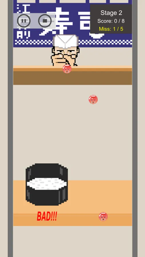 Miss count will be added if salmon roe egg spills from Gunkan, cannot be caught, or catches bad salmon roe egg.