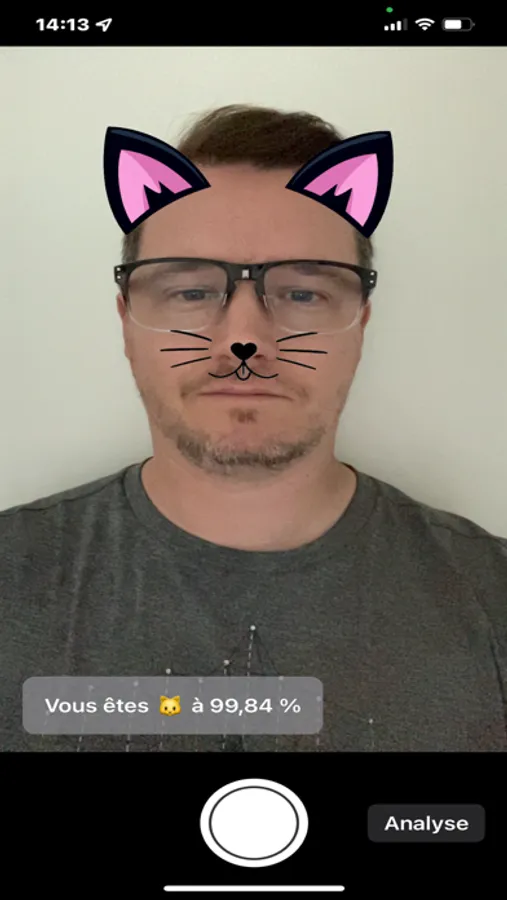An A.I based on 12 000 pictures of Dogs and Cats will tell you If you look like more like a Dog or a Cat and display the result in A.R ! You can save the result to your Photo Library and share it with your friends and family !