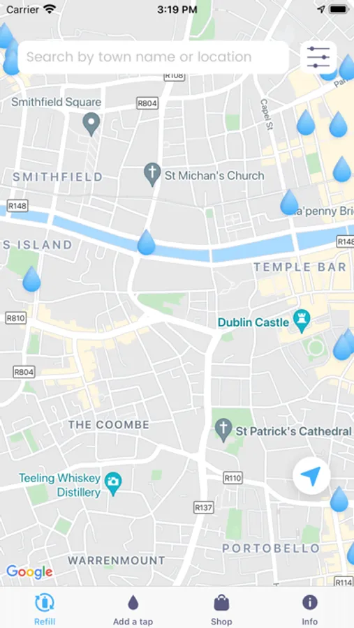 Tap Map - Find a tap near you. Our map covers the whole island of Ireland with locations in nearly every town so you won’t be forced to buy bottled water when out on a Saturday cycle. Search by your GPS location or by town. Filter your results based on indoor or outdoor taps, self service or served by a member of staff.