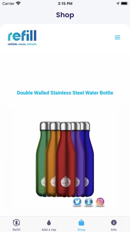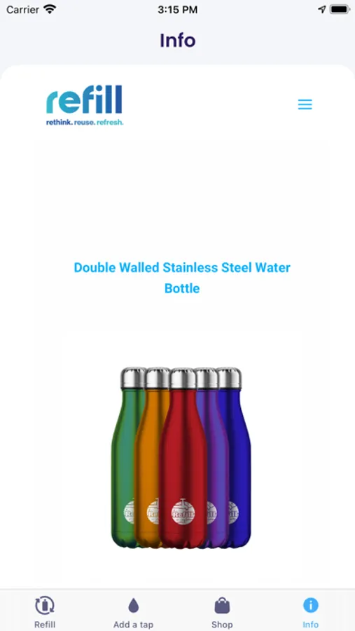 Shop - Treat yourself or a loved one to a new reusable water bottle that you can buy straight through the app. New bottle designs all the time so keep an eye out to find your favorite.