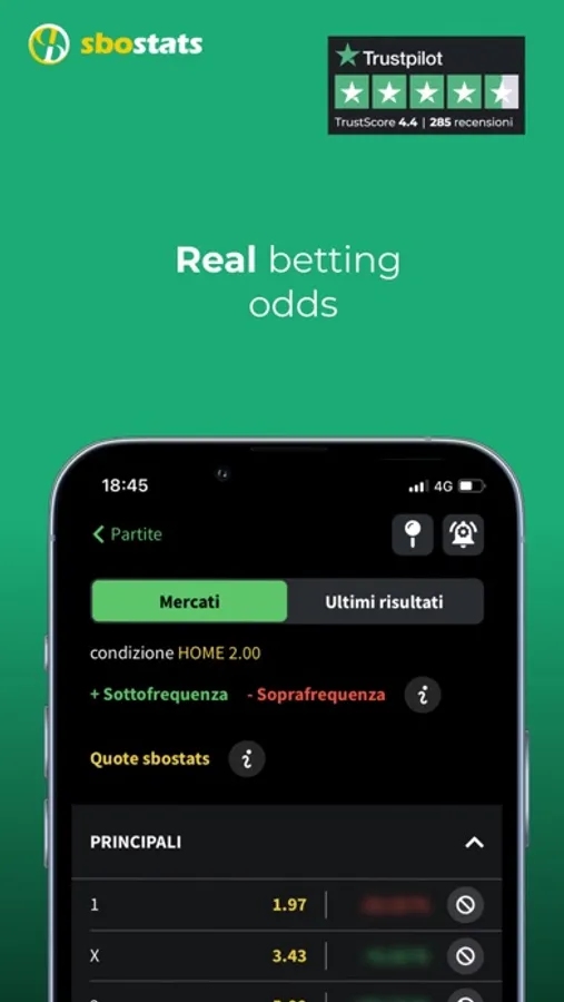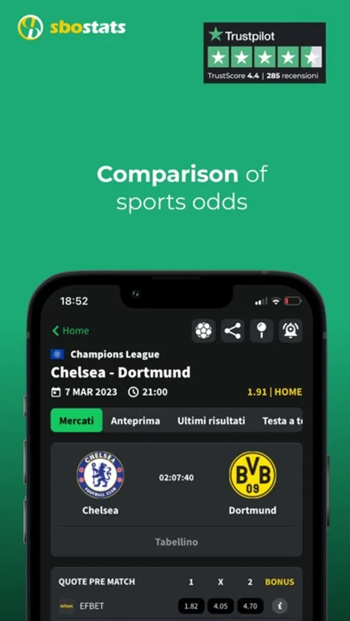 Thanks to Sbostats' real odds, you can discover the true value of the odds at any time and evaluate if there are any valuable markets to use to create your predictions.