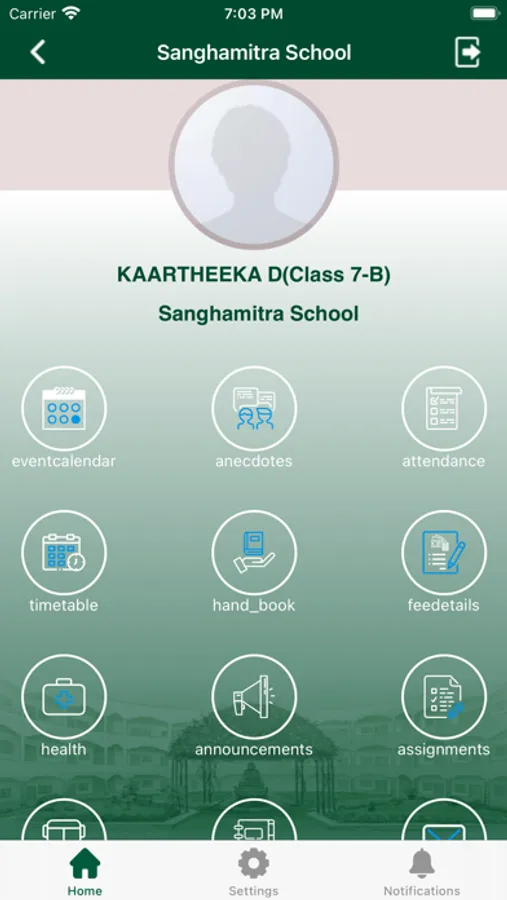 Sanghamitra School provides communication app for parents using which they can download school announcements, Class assignments, Events.