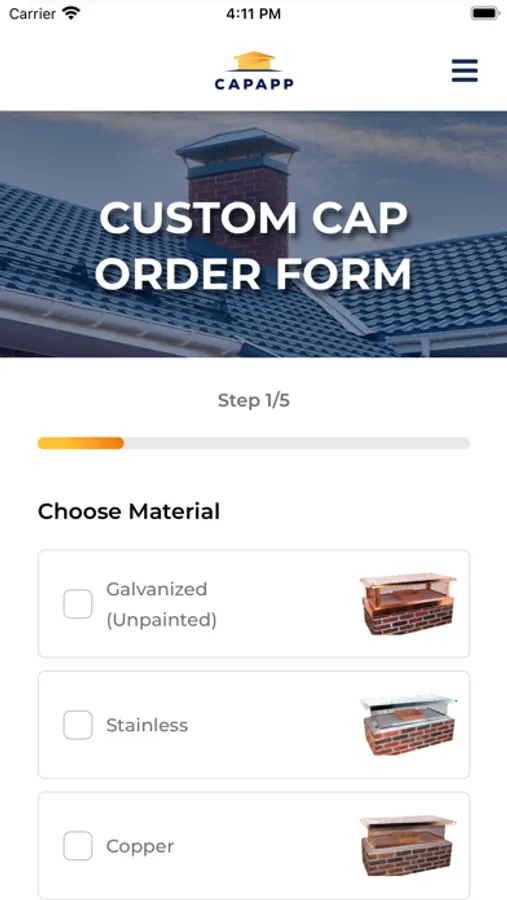 The CapApp makes it as easy as selecting whatever you would like, typing in your exact measurements, and submitting your order. You can do this all in under a minute, and real-time track your order from any device.