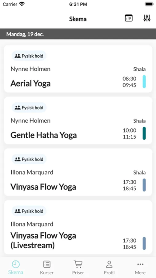 We have many different types of yoga and you might find one or two that becomes your favourite. However the idea is to offer a variety of ways to find into that yogic state of mind; clear, calm and grounded - and thereby making a solid blue print to keep doing so through a life time of practicing.