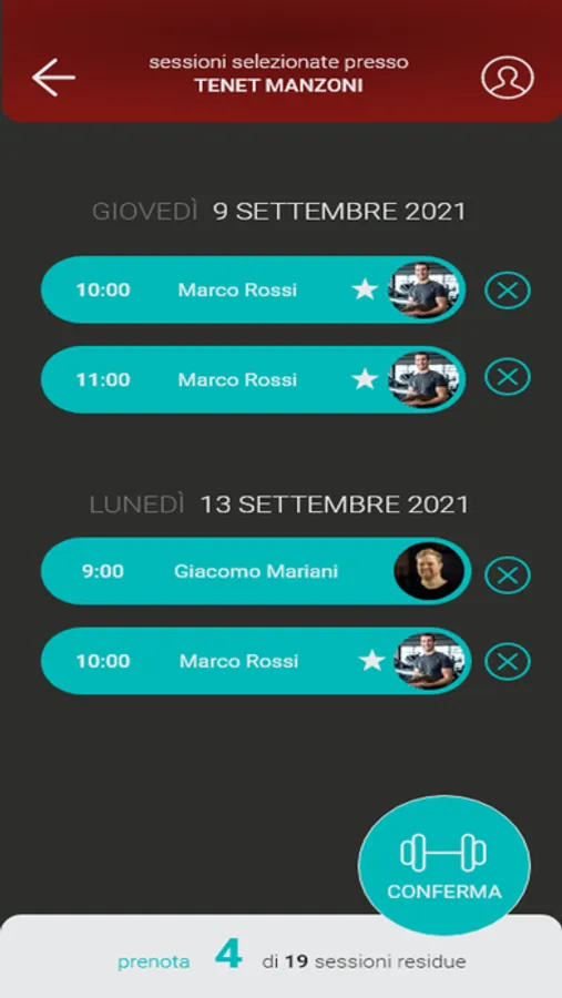 The app in question has the purpose of allowing customers who want to train in the Tenet gym to be able to book one or more available lessons. The customer can choose the gym where to train and can choose the coach. Before proceeding with the booking of the lesson, the customer must have purchased a package of lessons, if this has not happened the system directs the customer to purchase a package of their choice. The client can communicate with the coaches and with the management via messages. In the application there is a section for trainers where they can set the availability calendar and a section for the administration that can check the lessons they have taken.