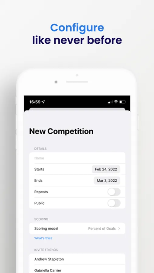 Friendly Competitions allows you to compete against groups of friends in fitness. It automatically uses your fitness goals and results from the Health app, without the need for pesky configuration. Create competitions like never before, like start & end date, scoring models and more.