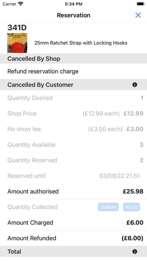 Authorise payment before reserving: to reduce no-shows, products can be flagged to require payment before being reserved. With out No Hassle Guarantee, customers can pay for products in store and refuse products which do not meet their expectations, receiving a full refund.