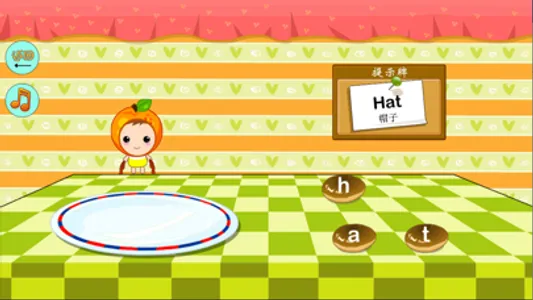 一款简洁的卡通学字母与单词游戏,通过文字和语音提示,拖动对应的面包到盘子里,通过游戏提升对字母与单词的熟悉。