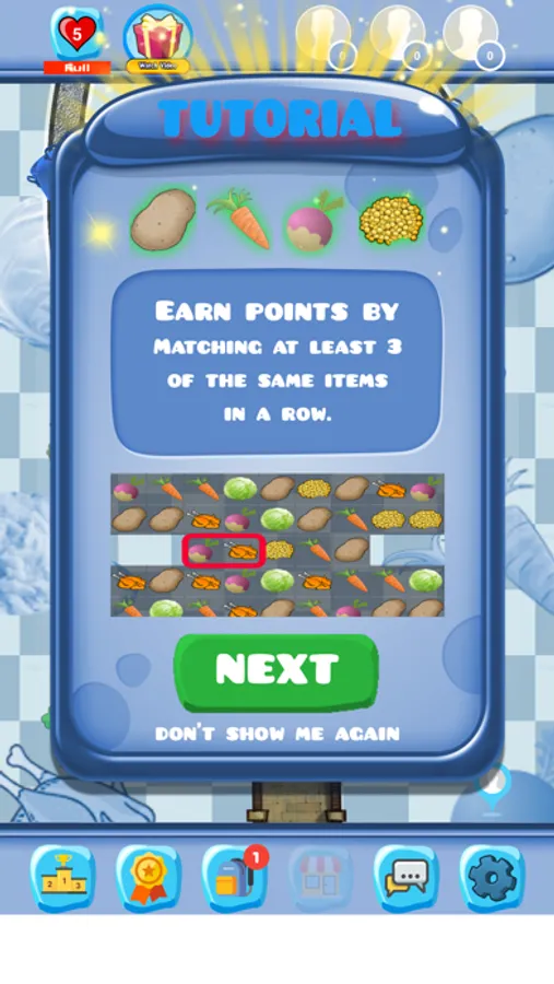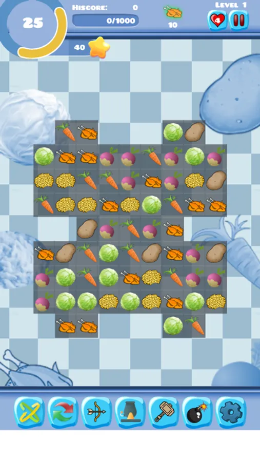Switch, swap, and match similar vegetables to gather a chain of 3 or more in a row. Use multiple specials or create the famous Salt Beef or Jiggs Dinner by combining 4 or more vegetables in a row, or create the tasty Gravy by forming a cross of 2 rows of at least 3 vegetables.