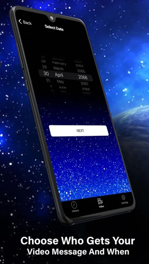 After recording, choose who will get your video message and when. Your message can be delivered to anyone, anytime in the future. Just fill in their correct contact details and the app will do the rest.