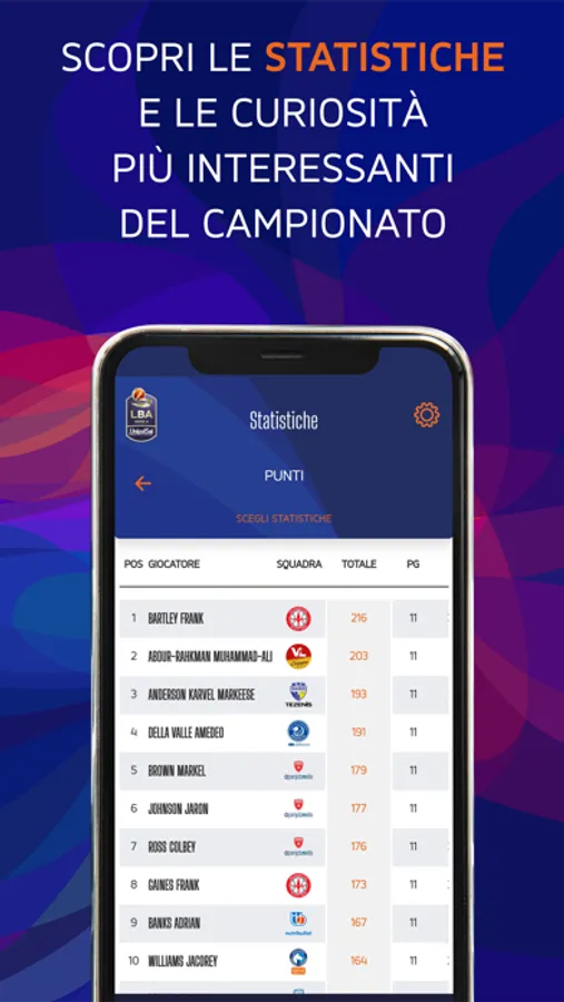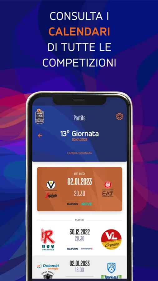 Entra nel vivo delle competizioni LBA e scopri tutte le funzionalità dell'app ufficiale. Segui il play by play dei match, visualizza calendario, risultati e classifiche, accedi alle statistiche di squadre e giocatori, attiva le notifiche push e rimani aggiornato sulle ultime news del campionato, sulla tua squadra del cuore e sul tuo giocatore preferito.