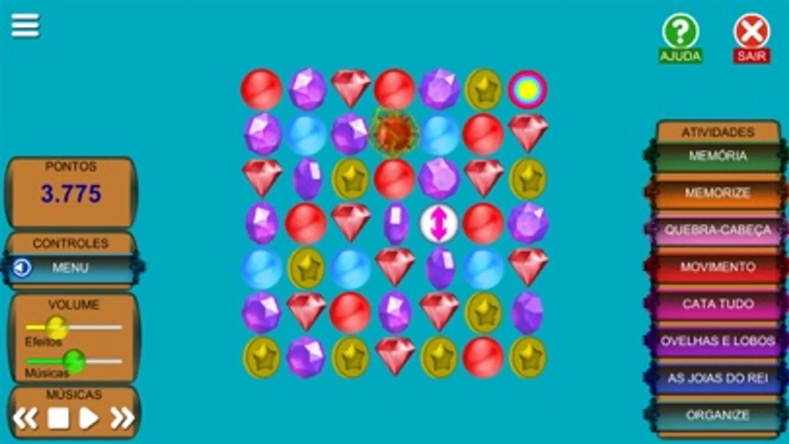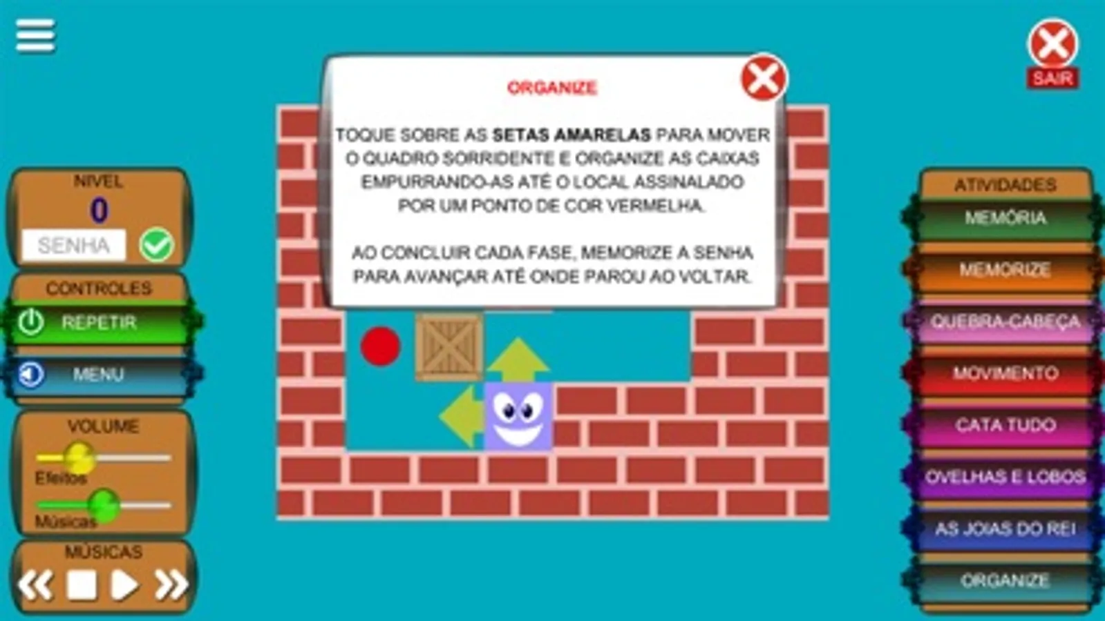Contém diversas atividades concebidas para o desenvolvimento da capacidade de raciocínio lógico e motora, como: Quebra-Cabeça, Memória, Cata Tudo, Memorize e outros.