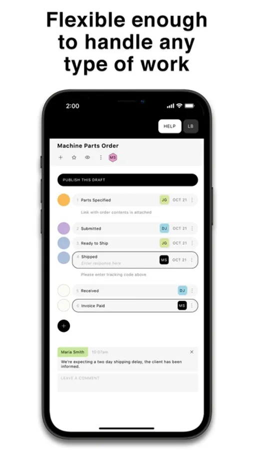 The visual interface tells you when work is complete but if you want to leave instructions, comments, or notes, you can leave them in the app.