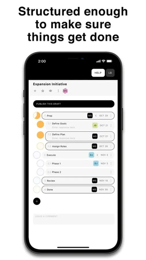 Polydot is a simple interface for helping you clarify steps and get things done with other people – including people that don’t have the app yet.