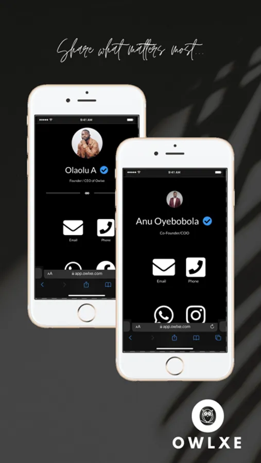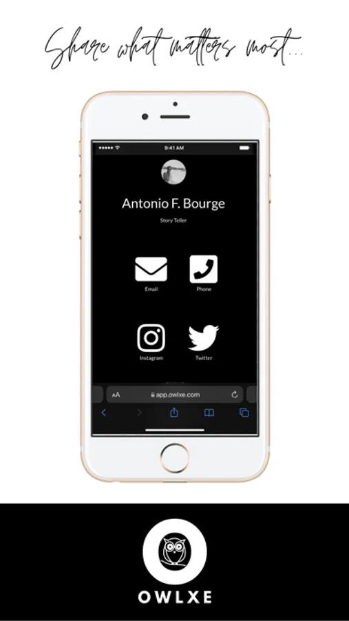 Our unique product line allows you to quickly share your business info, social media links, products for sale, video links and virtually anything worth sharing with just a tap. The best part is the other person doesn't have to have our app downloaded or own an Owlxe device to start engaging.