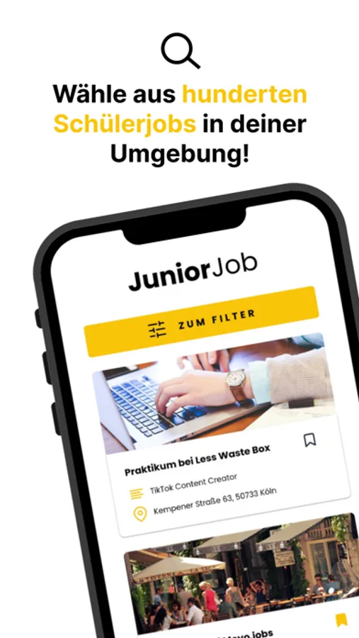 Als deutschlandweit erste Jobbörse für Jugendliche ermöglicht dir JuniorJob den Zugang zu Nebenjobs, Praktika und ehrenamtlichem Engagement.