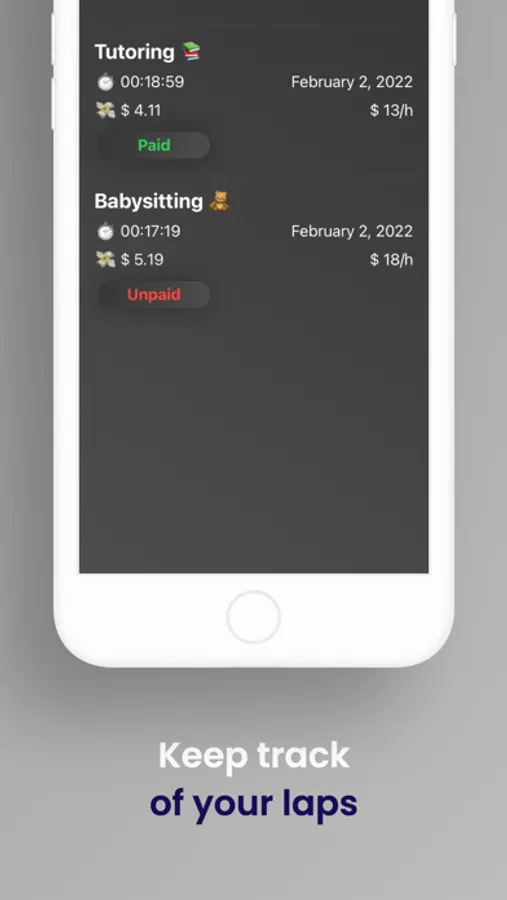 Pockey lets kids and teens keep track of their pocket money jobs and the money they earn. Just start the timer or stopwatch as soon as you start working (e.g. tutoring, babysitting, shopping). Pockey will automatically calculate the money earned and save your work. As soon as your wages are paid, you can enter it under "Last Laps“.