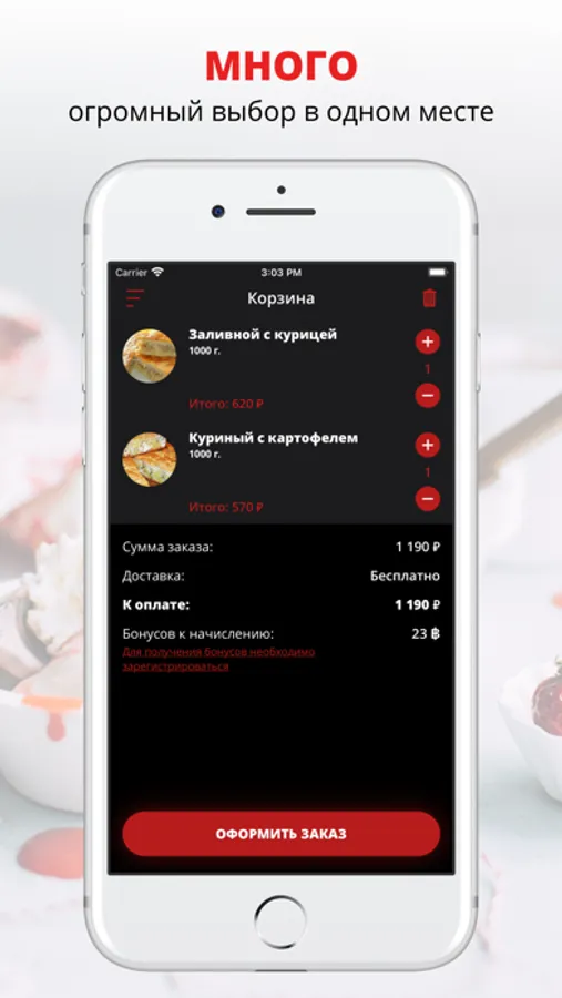 Скачивайте наше приложение, оформляйте заказ и наслаждайтесь любимой едой, где бы Вы ни были! Приятного аппетита!