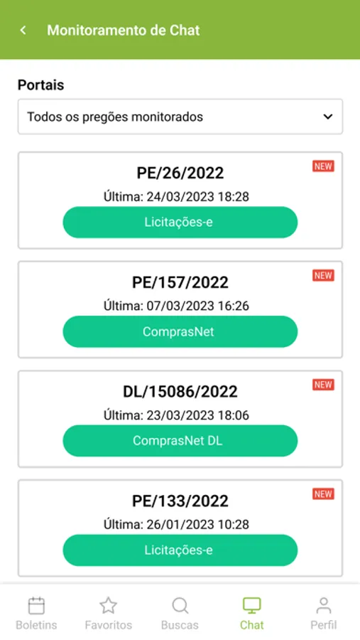 Monitore em tempo real o chat dos pregões eletrônicos que você participa;