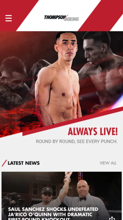 Stream all our Live Events, get all the stats, and catch up with all the boxing news. Download and enjoy all the TB App features and our events for FREE. You'll never have to pay. Keep up with us and be the first to know about upcoming events and news. No unwanted ads, Stream on your favorites devices, Live comments and interactions. WELCOME TO THE THOMPSON BOXING APP.