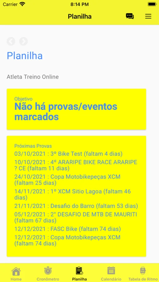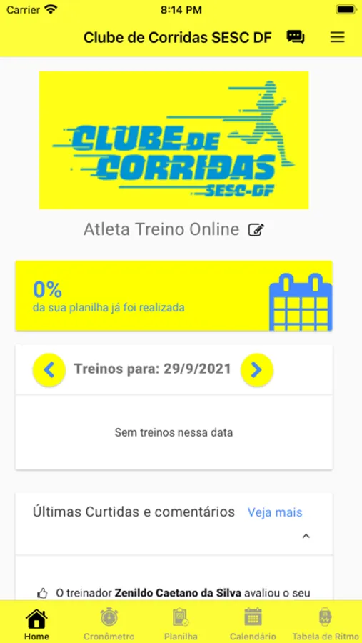 Aplicativo para os atletas do Clube de Corridas SESC DF que conta com as seguintes funcionalidades: