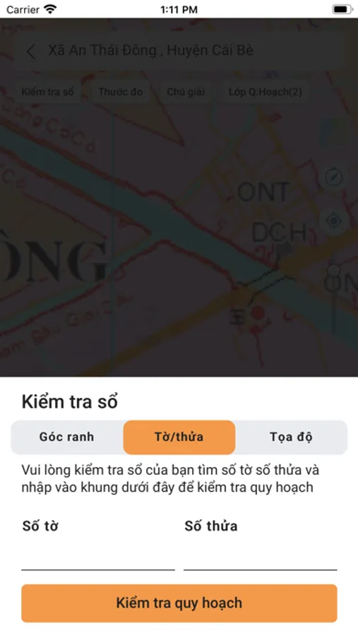 - Tra cứu thông tin quy hoạch theo số tờ - số thửa của sổ đỏ.