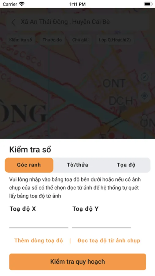 - Tra cứu thông tin quy hoạch theo toạ độ góc ranh VN2000 trên sổ đỏ.