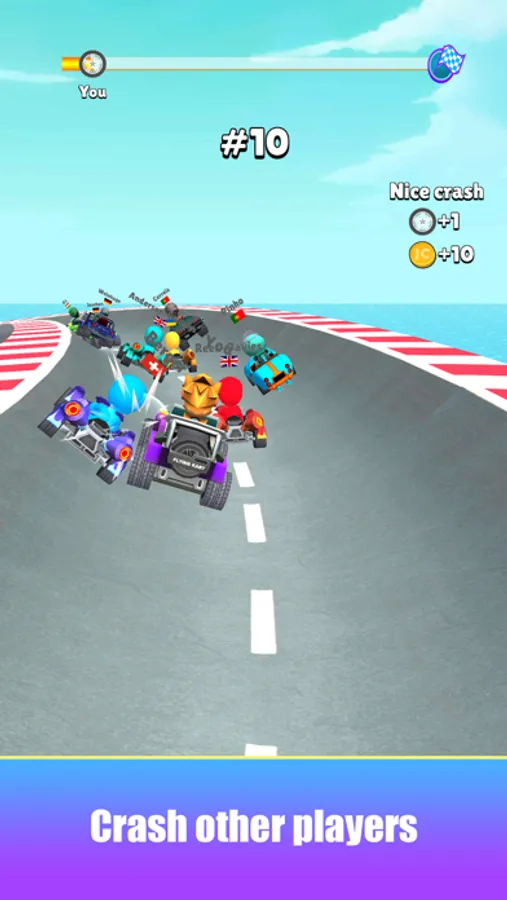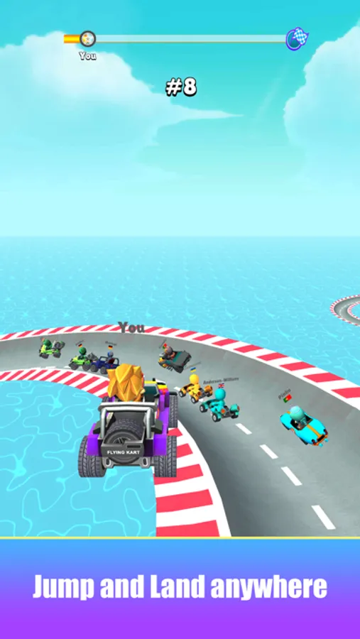 - Perform drift driving, drift racing, crash other player's kart, physics jump and stunts anytime you like.