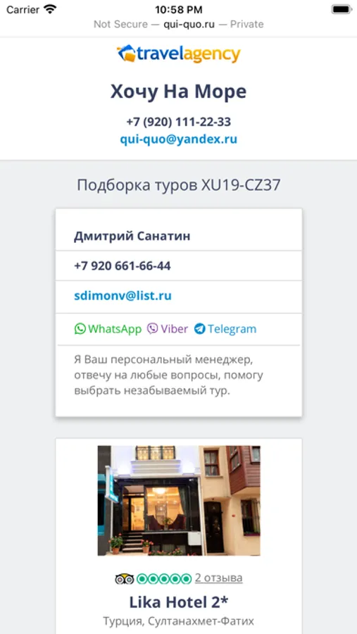 Это расширение поможет турагенту создать красивую подборку туров буквально в пару кликов. Подборку можно послать через мессенджер, в соцсеть или по email.